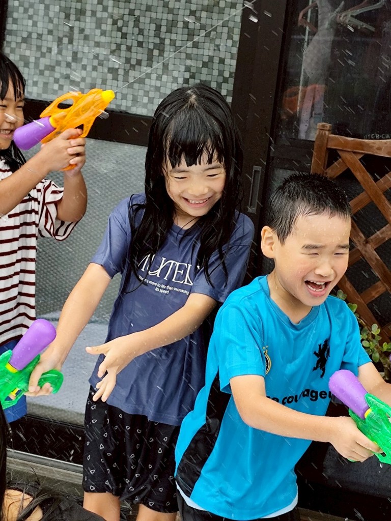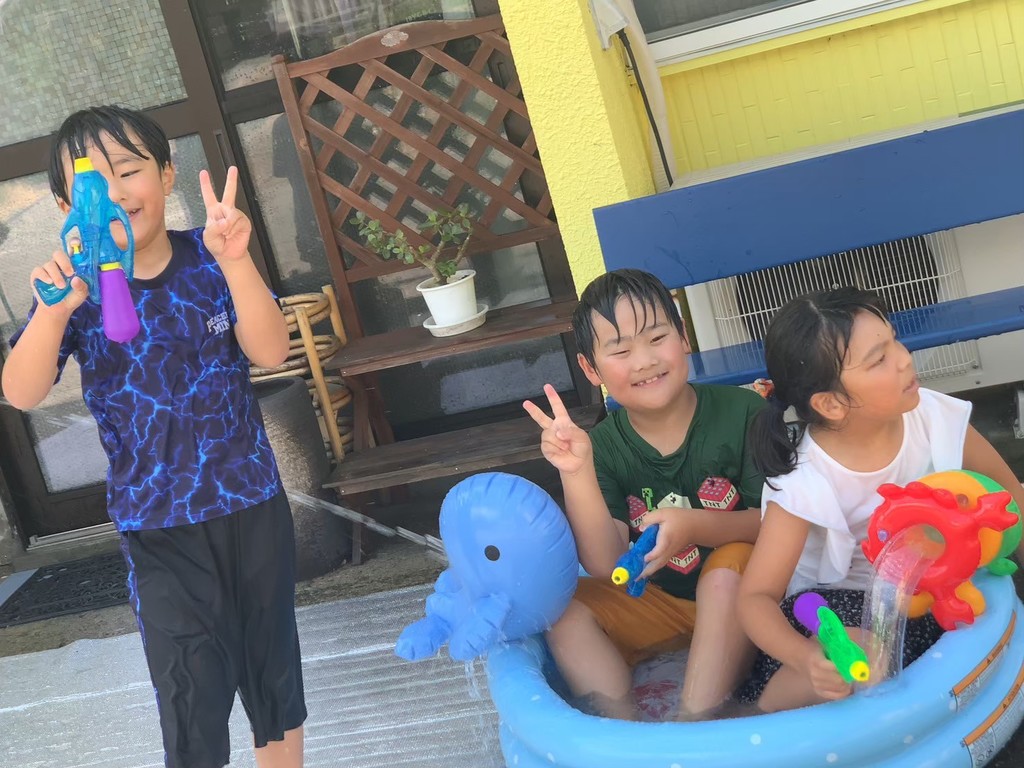 夏休み期間中も気温が高くなる前に公園遊びや水遊びなどたくさん遊び、勉強もしっかり取り組み、おいしいお給食もたくさん食べて、お友達と一日中過ごす楽しい思い出となったようです。