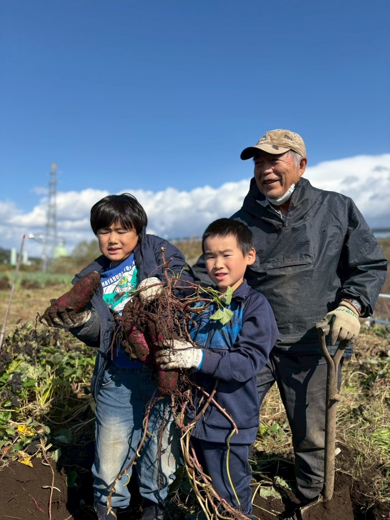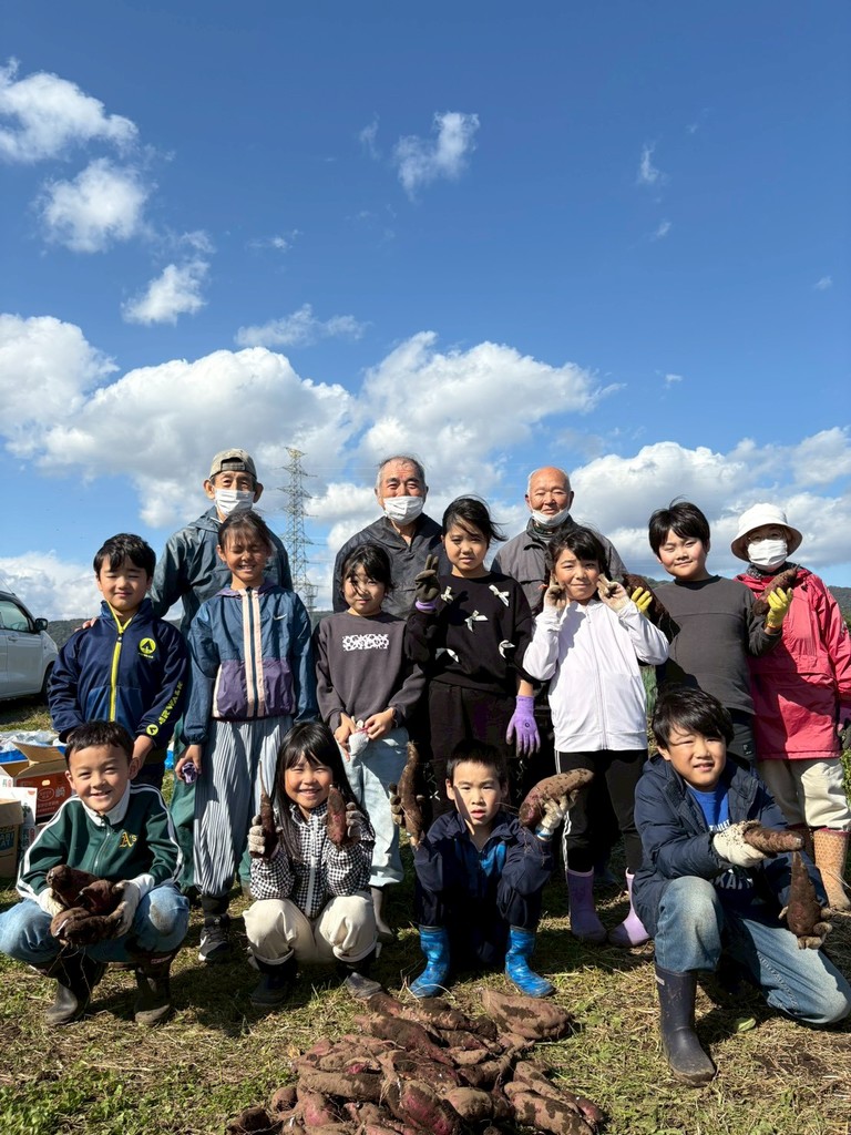 学習発表会の振替休日を利用して、毎年お世話になっているおじいちゃんおばあちゃん達に育てていただいたさつまいもの収穫に畑に向かいました。
