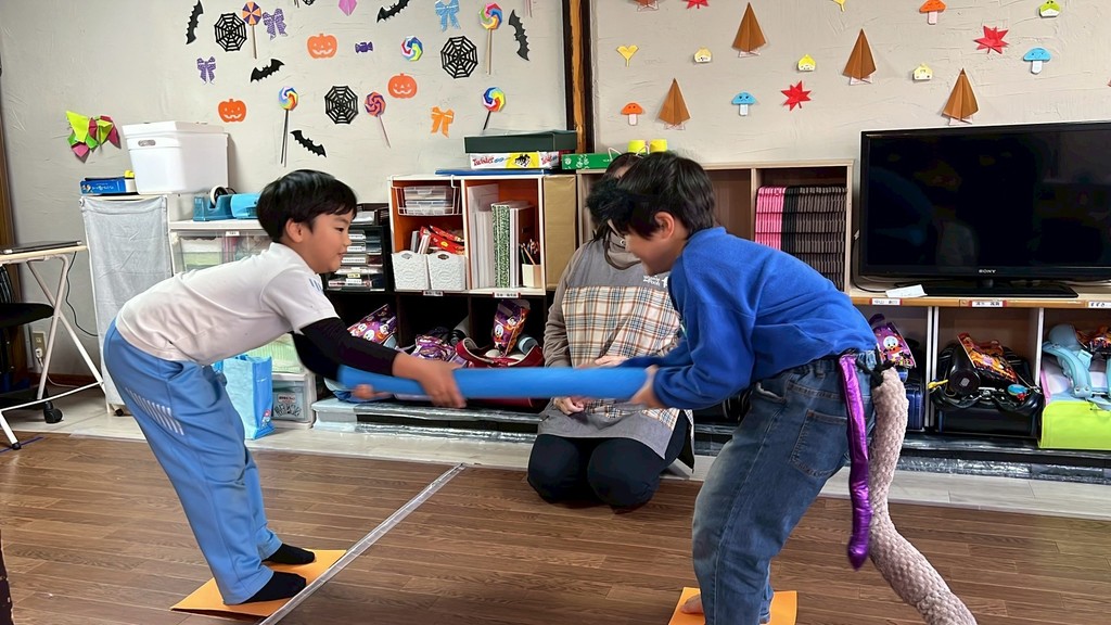 学童に戻ってからは「ゾンビチーム」「ゴーストチーム」に分かれてゲーム大会。どのゲームも白熱しチームメイトへの応援の声も大音響になっていました。